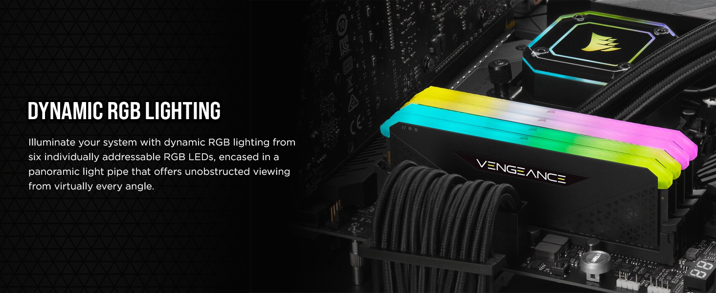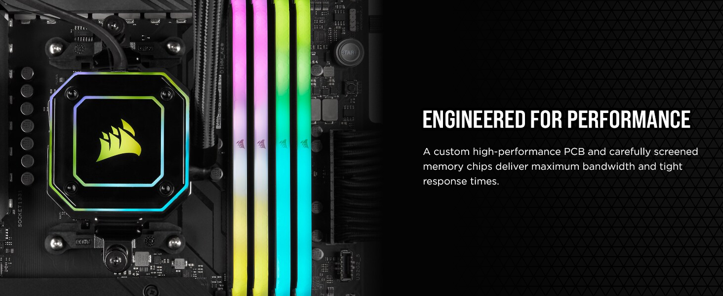 Dynamic RGB Lighting: Illuminate your system with dynamic RGB lighting from six individually addressable RGB LEDs, encased in a panoramic light pipe that offers unobstructed viewing from virtually every angle. Create and Customize: Choose from dozens of preset lighting profiles, or create your own in CORSAIR iCUE software. Maximum Bandwidth Create and Customize: Choose from dozens of preset lighting profiles, or create your own in CORSAIR iCUE software. Tight Response Times: Optimized for outstanding performance on the latest Intel and AMD DDR4 motherboards. Custom Performance PCB: Guarantees strong signal quality for superior performance and stability.